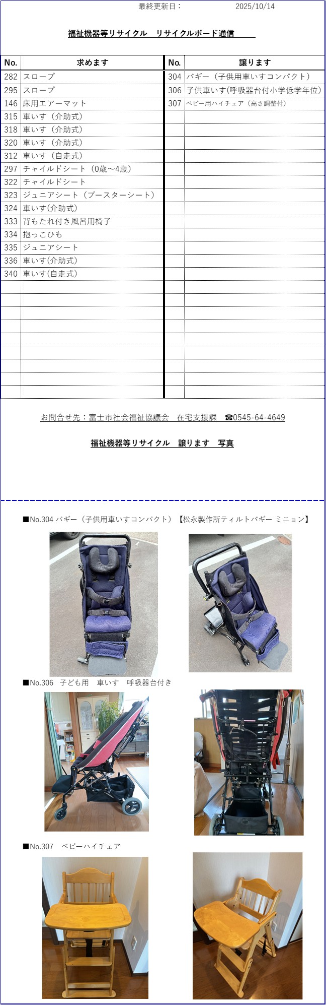 不要になった福祉機器やベビー用品を譲りたい方または必要としている方。但し、富士市民の方に限ります。