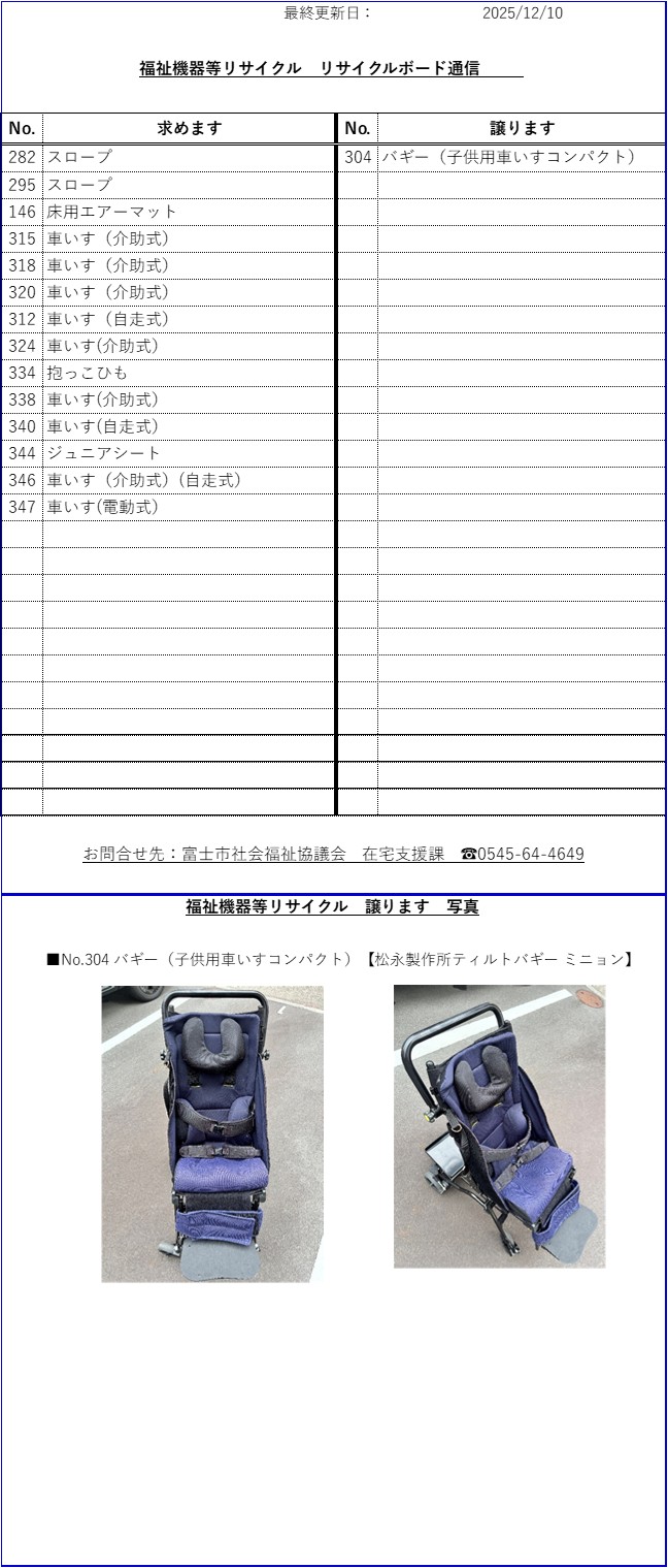 富士市内に設置されている以下の福祉機器リサイクル伝言板でも、情報をご覧いただけます。